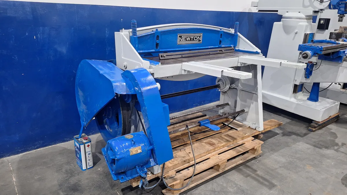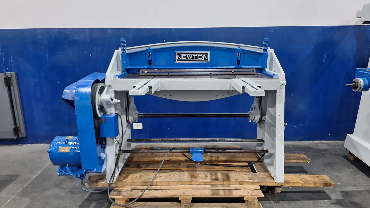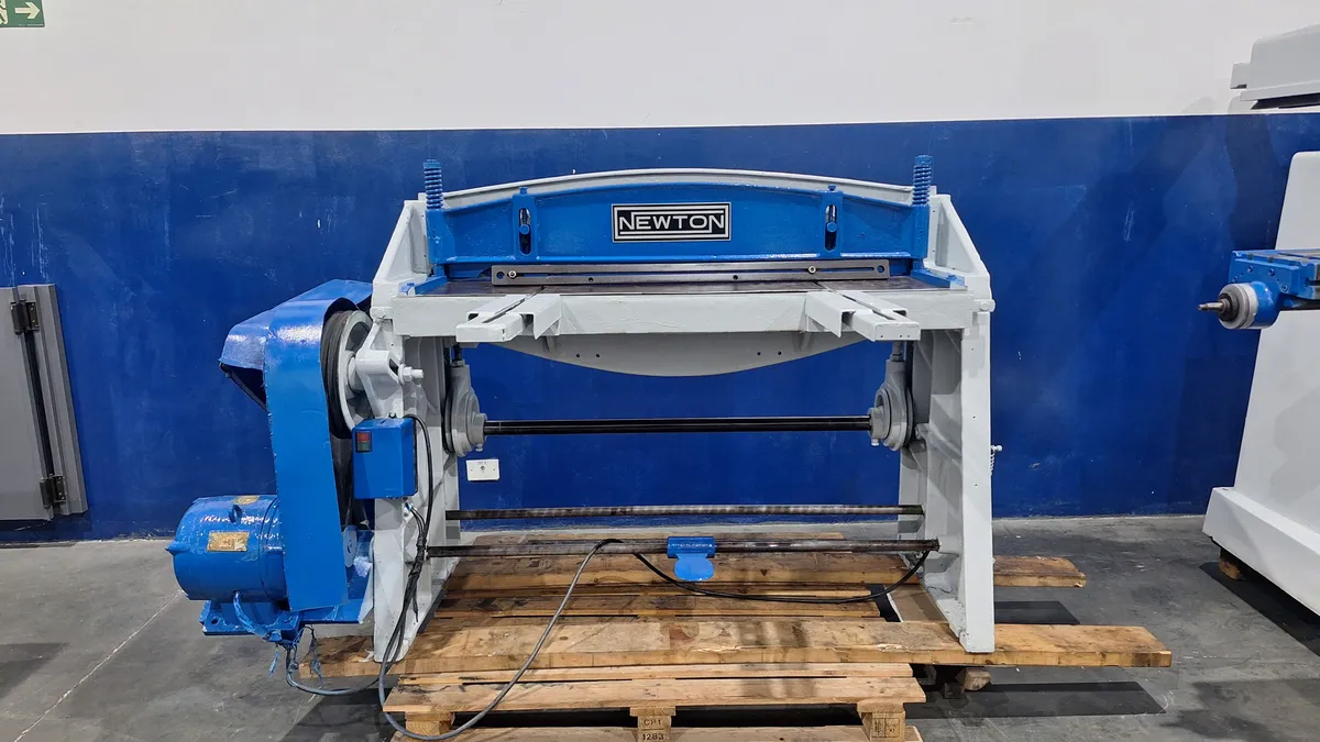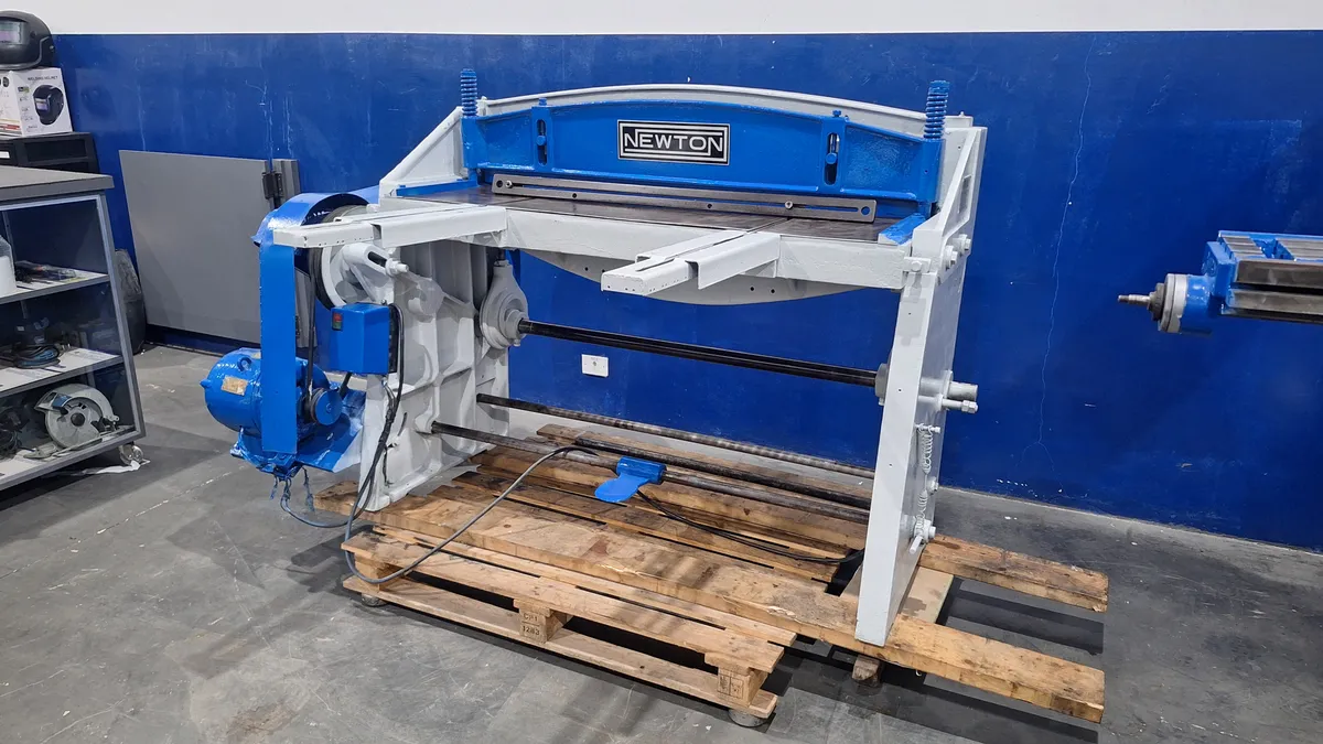 Guilhotina Newton Eletromecânica para 3mm X 1000mm de capacidade de corte em aço carbono, com pedal de acionamento, Guias Frontais Dianteiras, 220 volts trifásico Maquina com pintura nova, feita recentemente. Envio por conta do comprador!